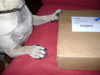 While I was waiting for my sister, our little pug Luna was trying to open package instead of me, LOL (photo is not good quality, because it was hard to get a photo while Luna was running with package around the room)