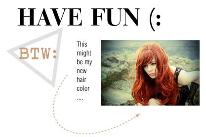 P.S. : Tomorrow or as in my country already today (its 01:15 in the morning or should I say at night), so Im talking about Thursday.... I will change my hair into red/orange, Im so excited and so freaking out, because I think Im not enough brave to do this. Don't worry, Ill post photos before and after, so you will be able to see if there is any change :)