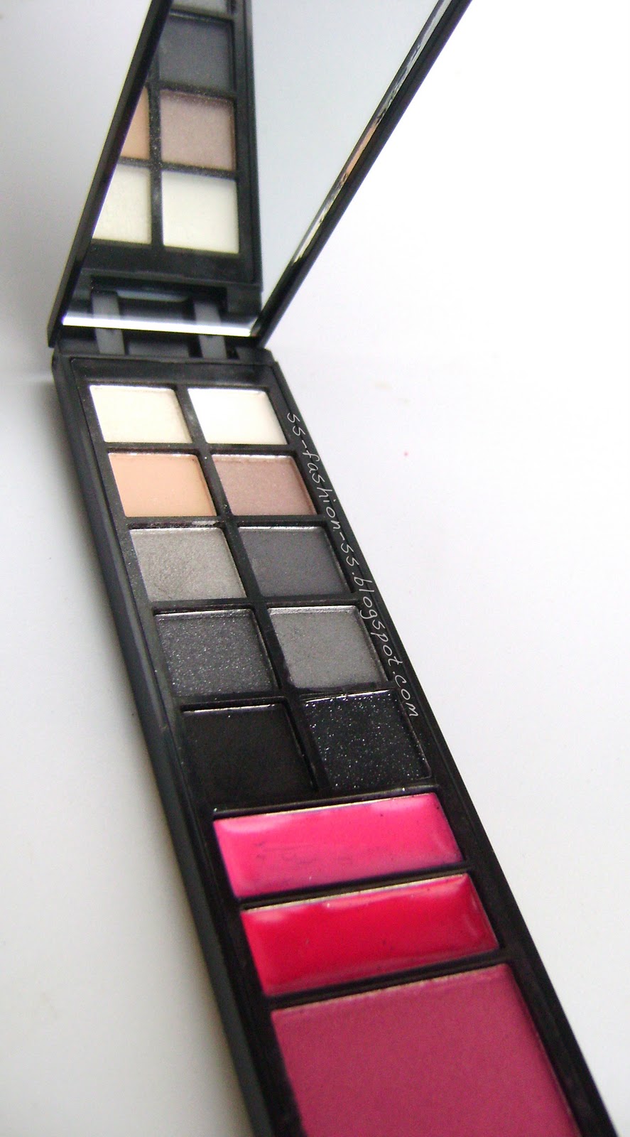 5. DAY TO NIGHT BEAUTY-ON-THE-GO : You got 2 palettes (Night on the Town and Day at the Beach) and one compact with mirror for portable beauty. Both palettes together includes 20 eyeshadows, 4 lip-glosses and 2 blushes. I don't really like the whole thing, because is not practical for having it at home, because when one palette is in his plastic case, where should I put another one ? But honestly, I just love those eyeshadow ! They are really long-lasting !