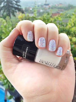 New nails photos :) This time I called it Summer Night. Why ? Hmmm... Let me think why I called it like that. Maybe because here where I live, is right now dark outside, and maybe because white color of nails reminds me on summer, and blue glitters all over it, reminds me on night. Pretty crazy, ha ? That's me :)
