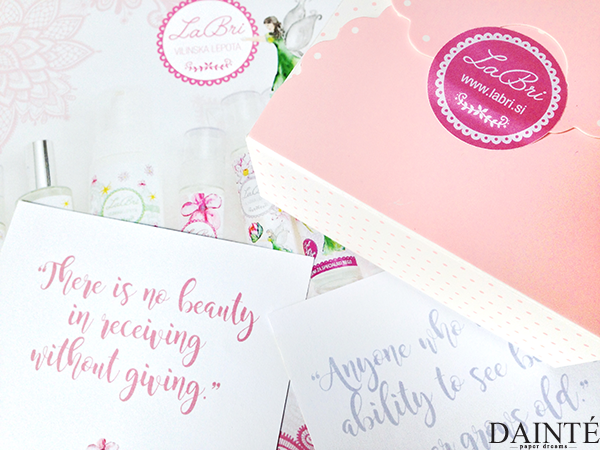 Butično kozmetiko izdeluje simpatična gospa Brigita Lapornik, ki je svojo strast do izdelave naravnih izdelkov začutila med delom v farmacevtski industriji in se zato podala na samostojno podjetniško pot ter tako sledila svojemu poslanstvu. V zadovoljstvo mi je, da sem imela priložnost spoznati izdelke, ki so narejeni s toliko ljubezni in znanja. Seveda smo na preizkus dobile tudi nekaj izdelkov, katerih ocene kmalu delim z vami, kakšen izdelek pa vam mogoče tudi podarim zato, da lahko tudi same testirate čarobnost teh produktov. V ponudbi kozmetike lahko najdete vse od obraznih krem do čistilne pene in tonika. Izdelke lahko kupite v Labri spletni trgovini.