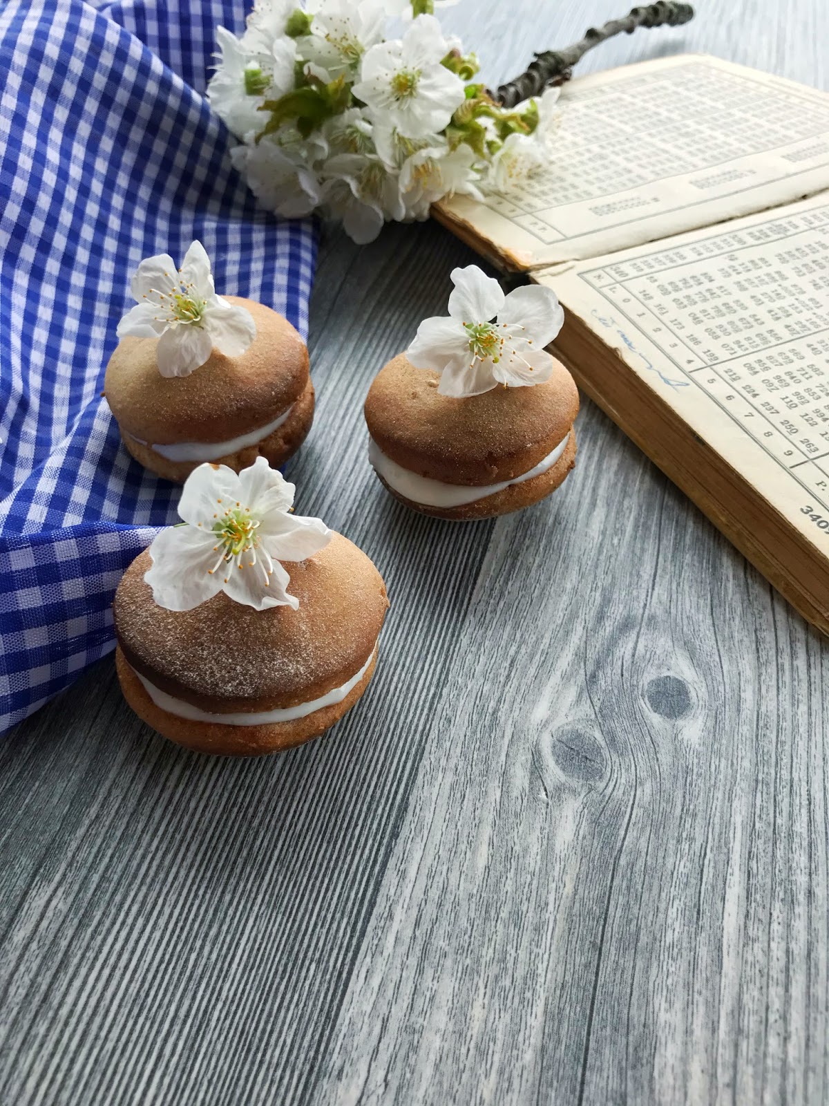 5. Ohlajen pečen piškot premažeš s kremo, ki jo pripraviš tako, da vse sestavine zmešaš skupaj. Na piškot dodaj piškot tako, da ustvariš sendvič.