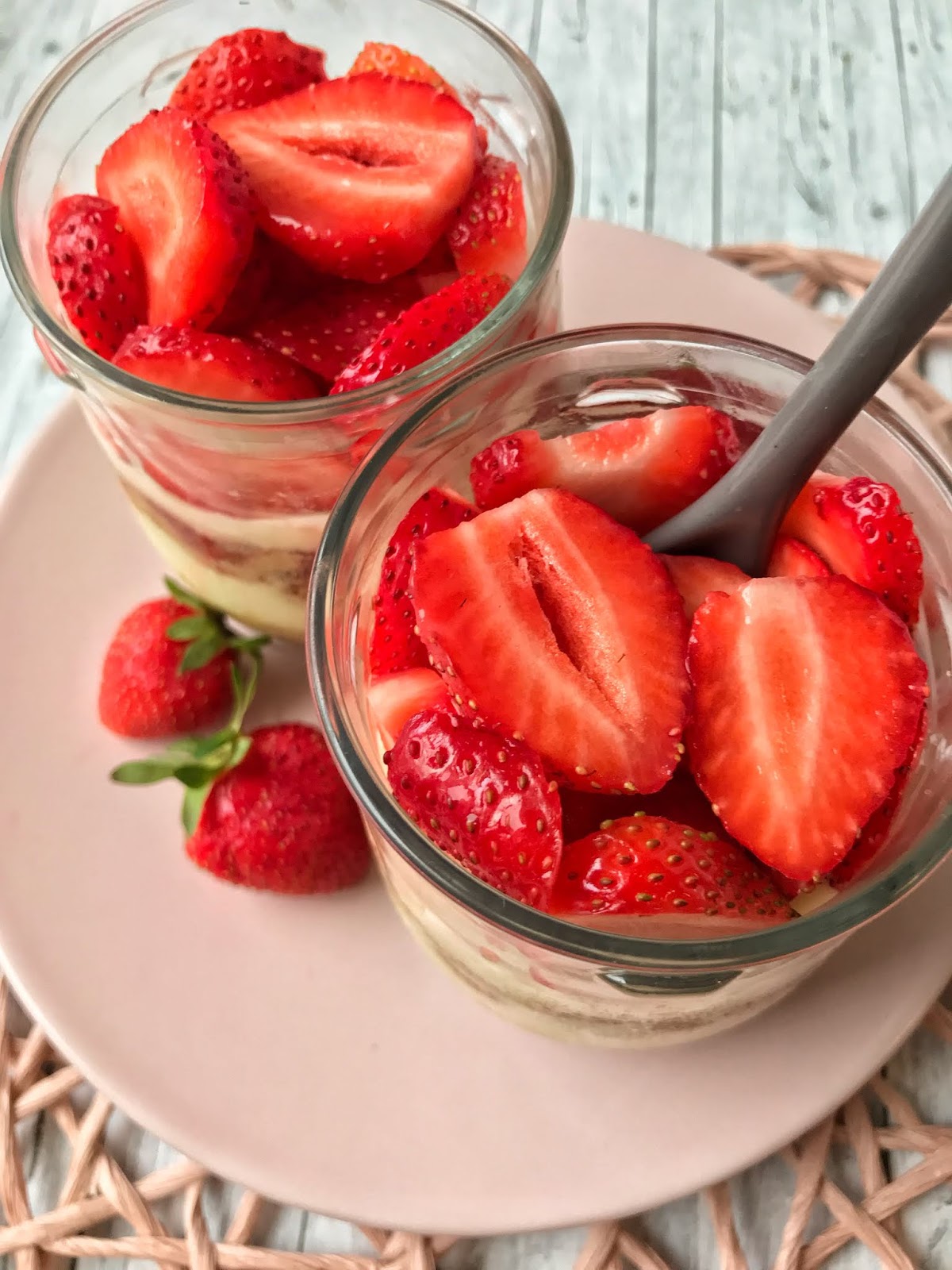 Pri sladicah je ta težava še večja, ker je težko narediti en kos torte ali pa en muffin, zato sem se odločila, da zmešam kar imam in pripravim nekaj sladkega zase in za mojo boljšo polovico, ki pa je tudi v tem trenutku na telefonu (še sreča, da so stopnice blizu). Vse kar potrebujemo za jagodni tiramisu z medenjaki sta le dva kozarca in 5 sestavin.